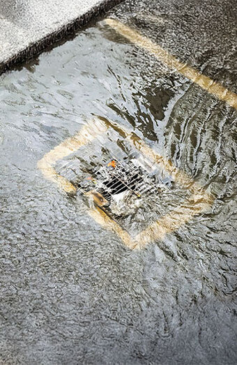 Quick response to surcharge pits backing up or flooding under pressure during heavy rainfall, preventing water from entering your yard or basement.